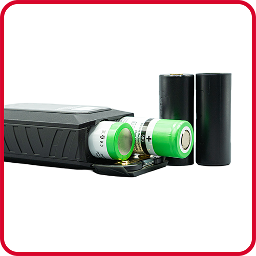 Le compartiment des accus est bien discret sur la Armour Max, en effet le bouton qui l’ouvre se trouve au dos de la box (côté Vaporesso) il vous suffira de presser le bas du dos de la box pour l’ouvrir ! Vous pourrez alors placer vos deux accus 21700 dans le sens correspondant ou bien vous servir des deux adaptateurs fournis dans le coffret pour l’équiper de deux accus 18650.